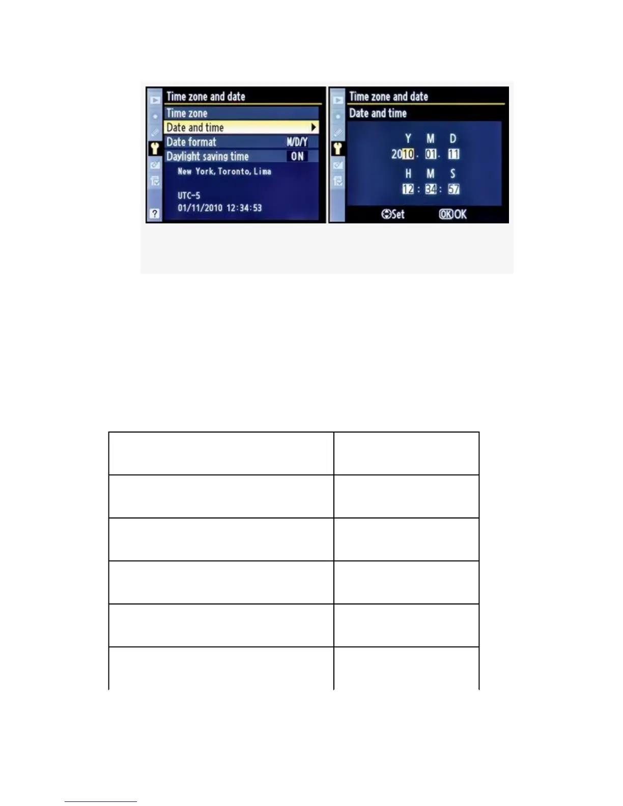 3. Press the OK button to lock in the Date and time.