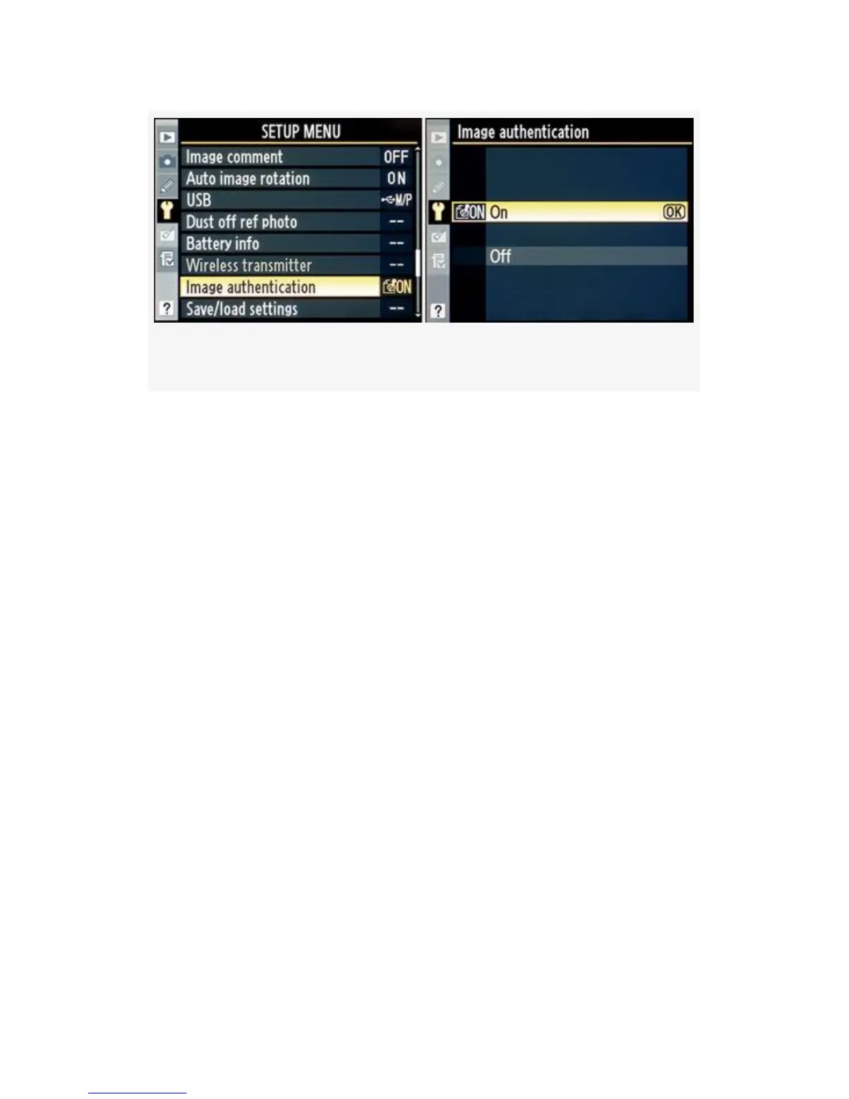 my camera’s Image authentication to On. I figure that one day