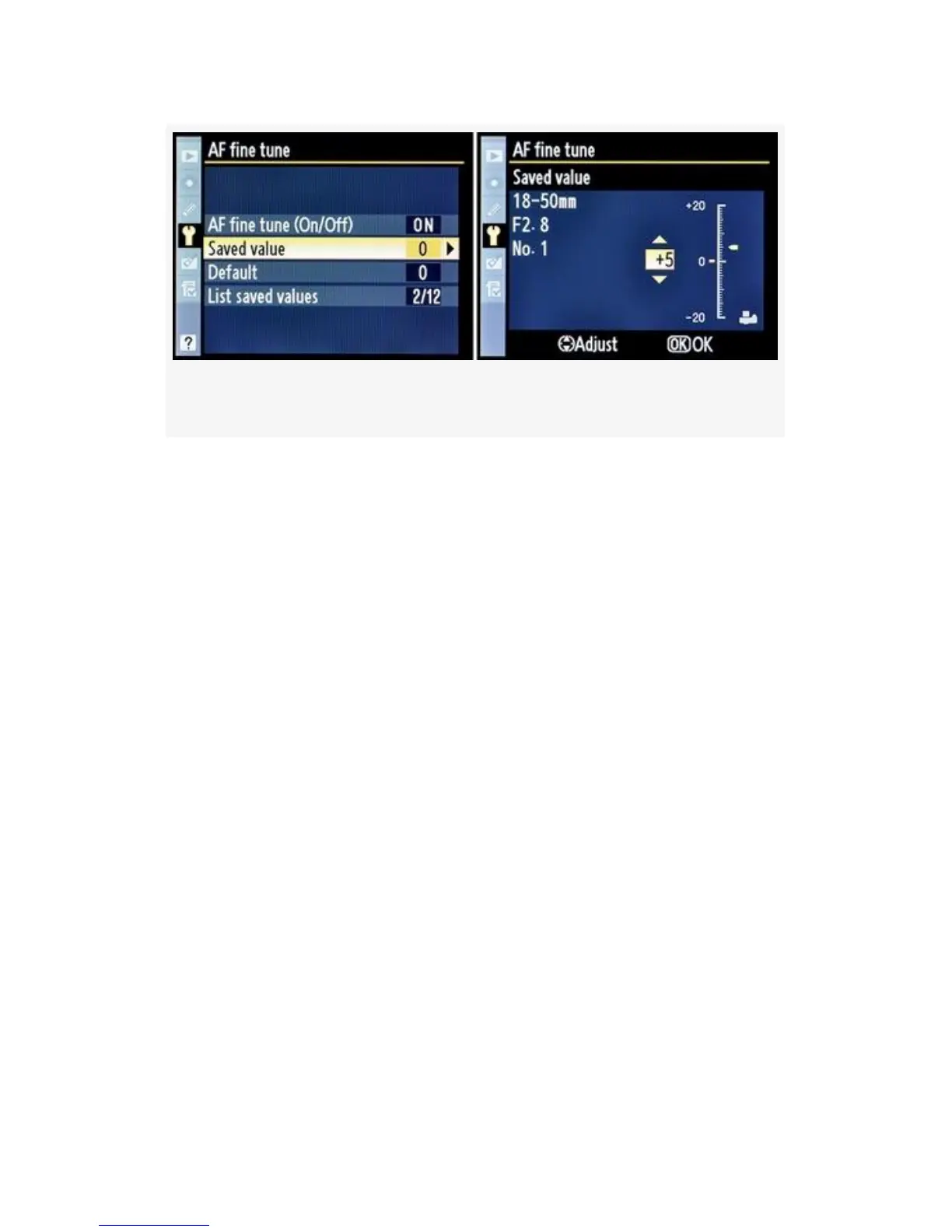 As shown in Figure 5-42, to set an AF fine tune > Default