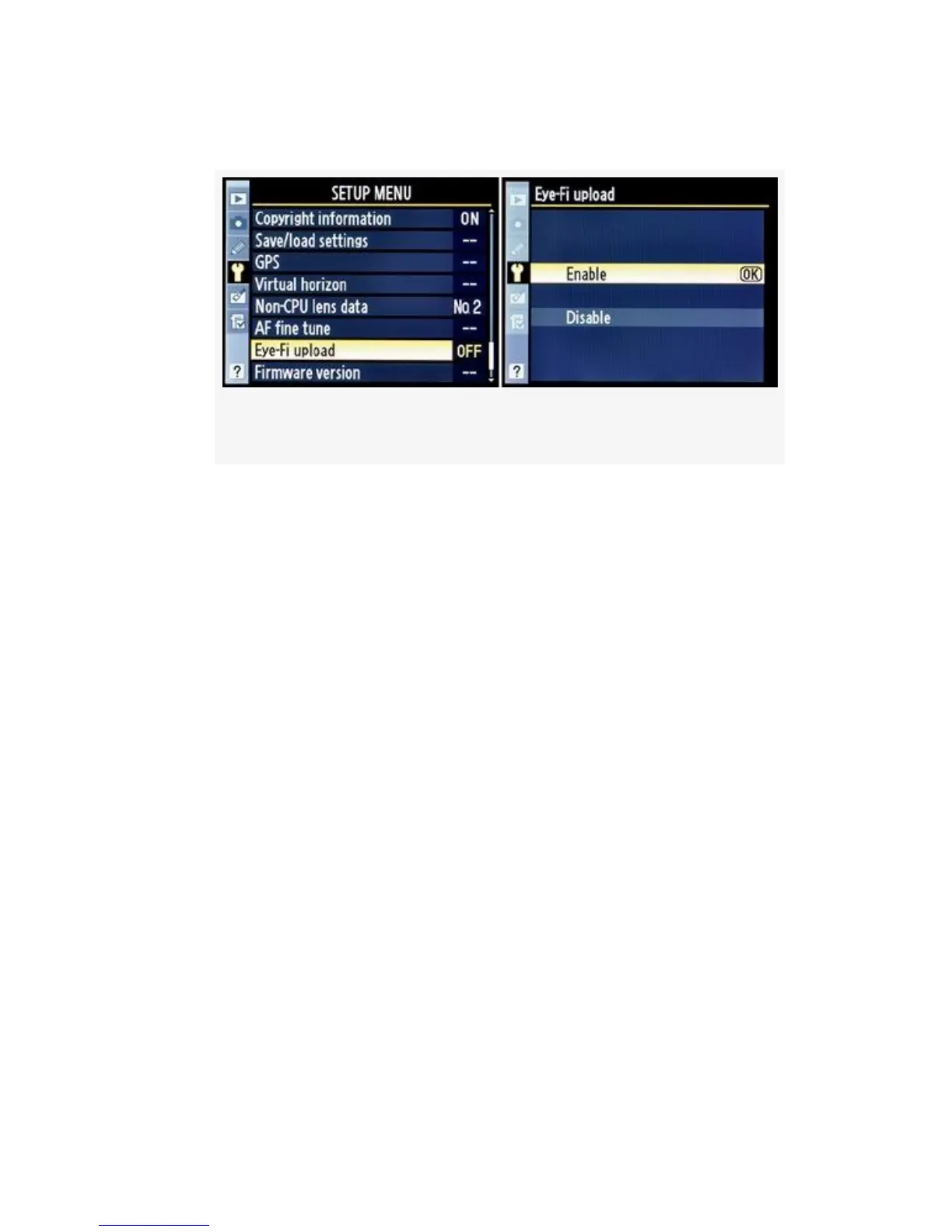 Figure 5-45. Eye-Fi Enable or Disable screens