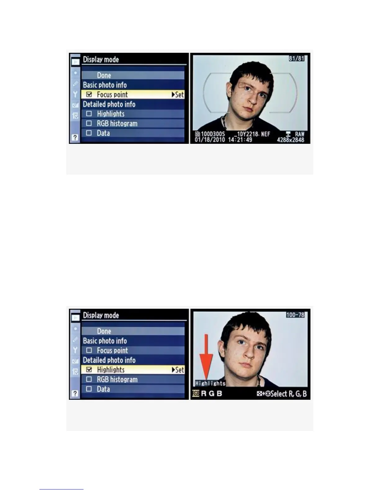 Figure 2-10. Display mode screens – Highlights option