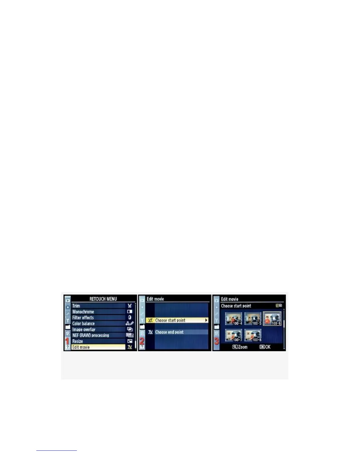 1. Choose Edit movie from the Retouch Menu and scroll to
