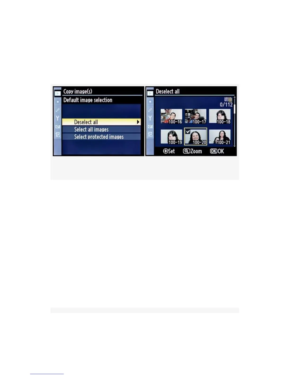 Mark an image for copying by pressing the Multi selector