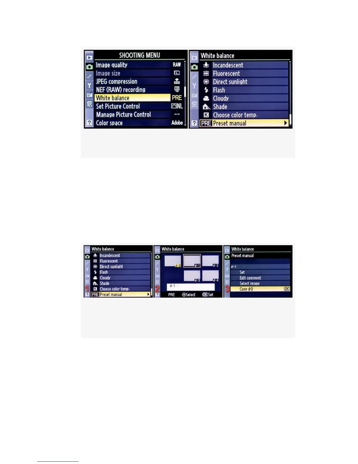 Figure 10-6. Starting White balance PRE maintenance