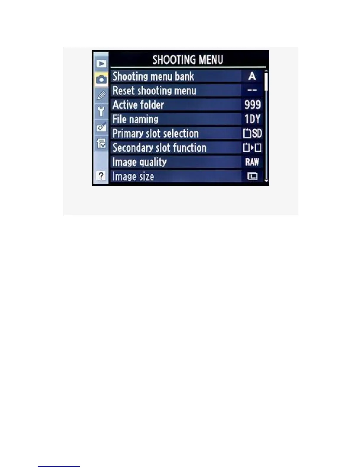 The Shooting menu banks allow you to set up functions such