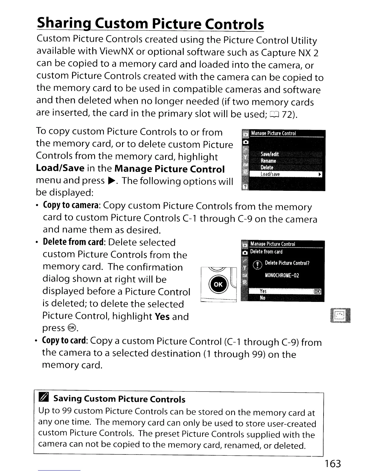 99 custom Picture Controls can be stored on
