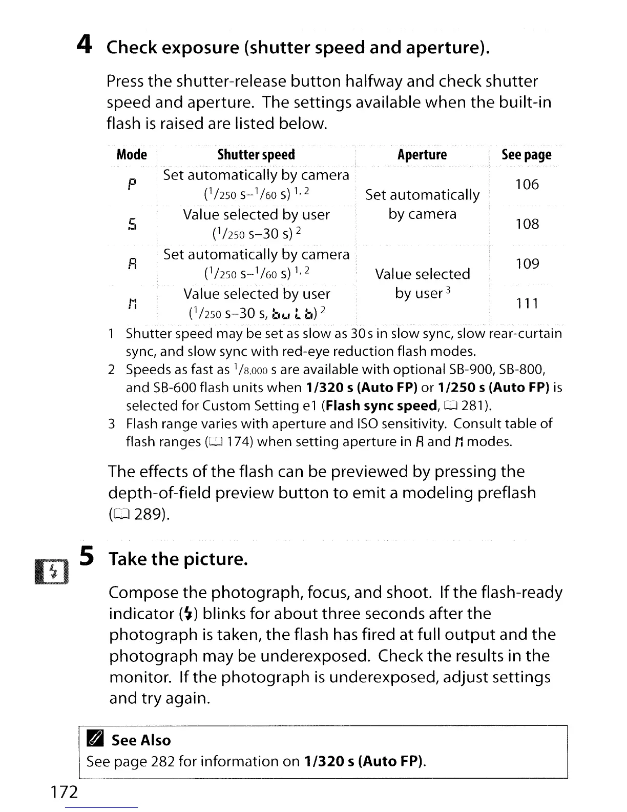 Compose the photograph, focus, and shoot. Ifthe flash-ready