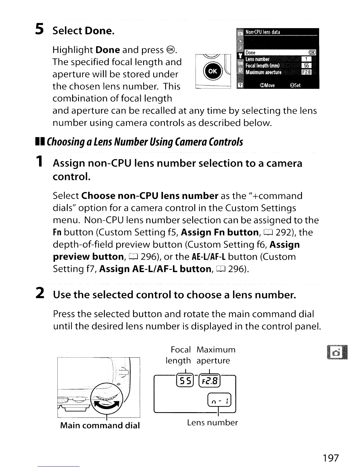 menu. Non-CPU lens