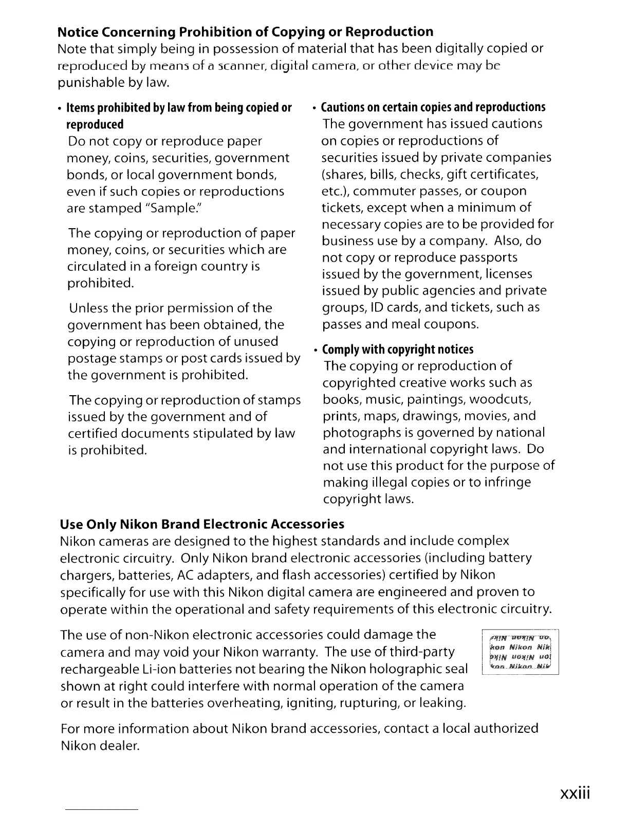 electronic circuitry. Only Nikon brand electronic accessories (including