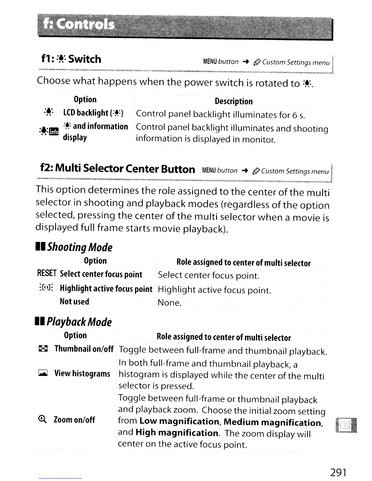 and playback zoom. Choose