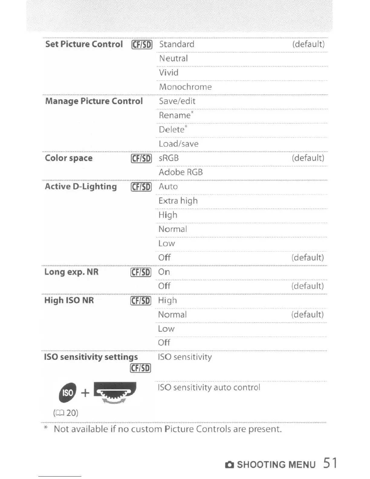 no custom Picture Controls are present.