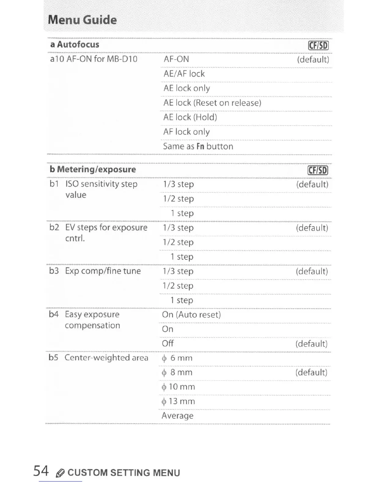 54 () CUSTOM SETTING MENU