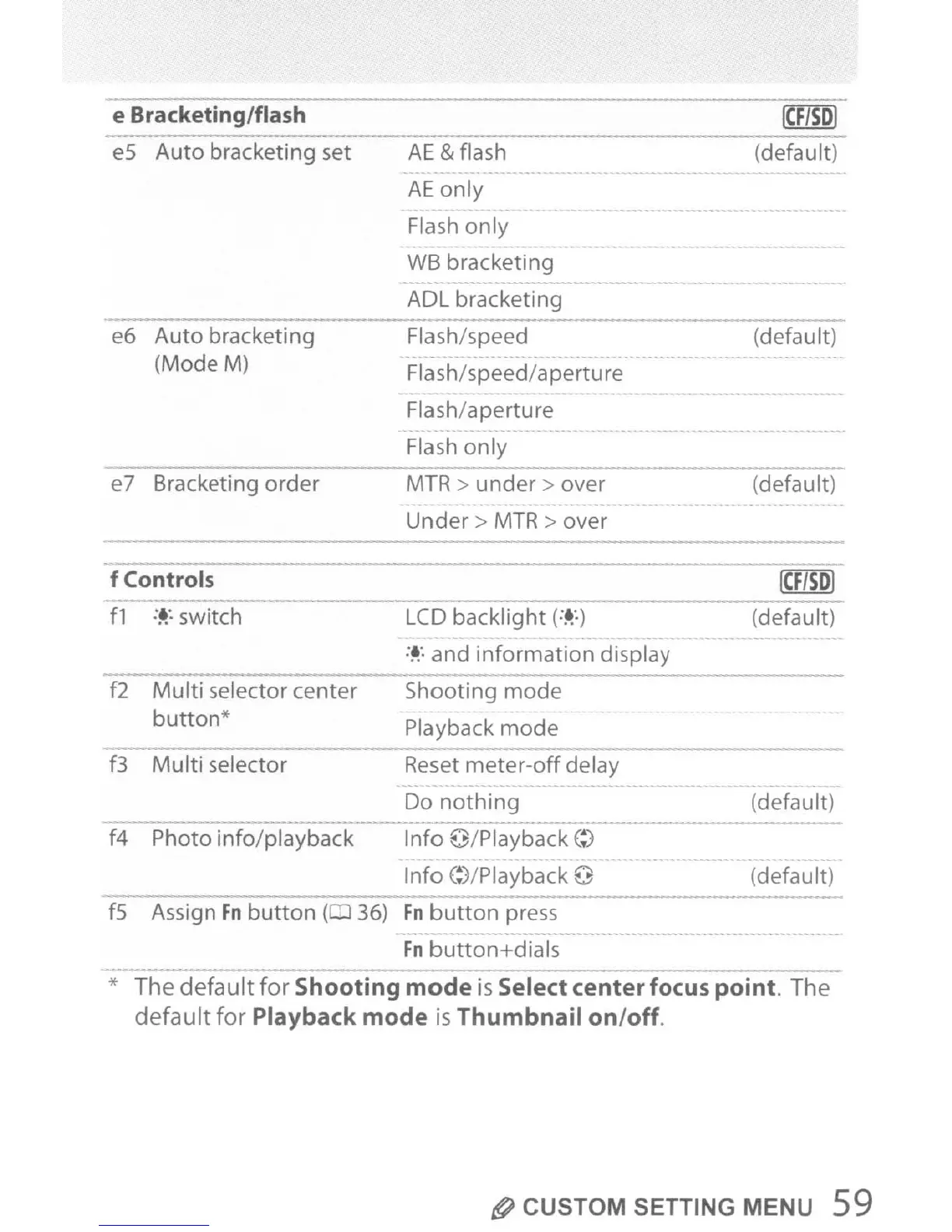 f2 Multi selector center Shooting mode
