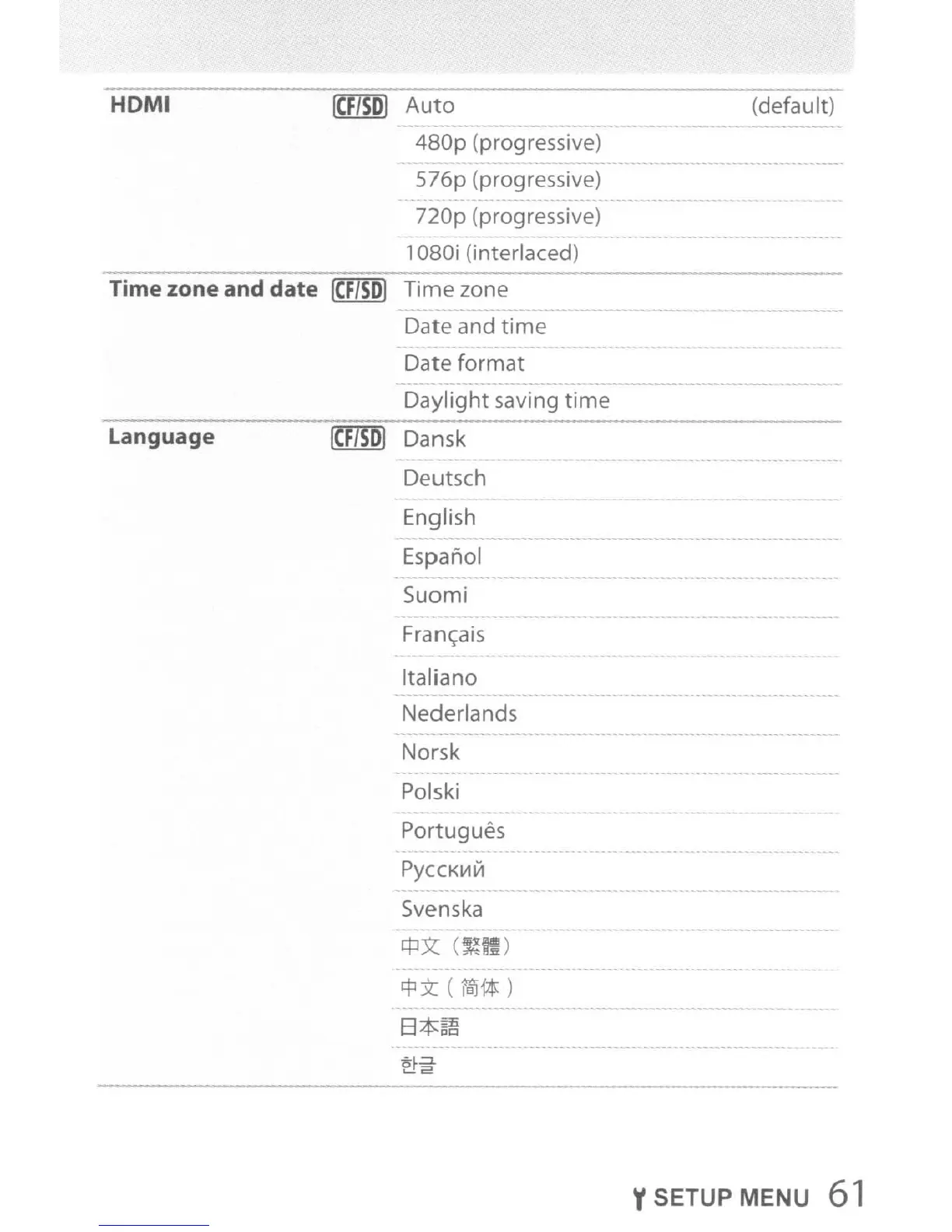 YSETUP MENU