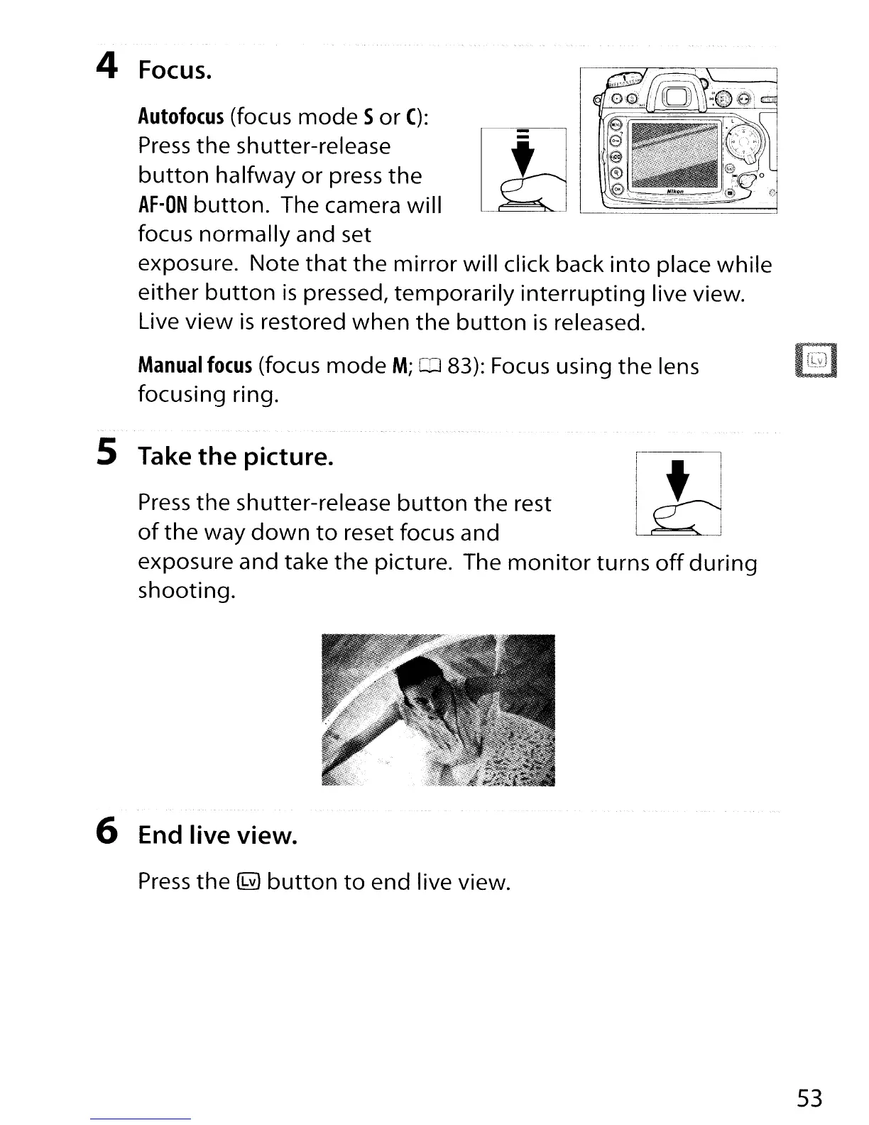 6 End live view.