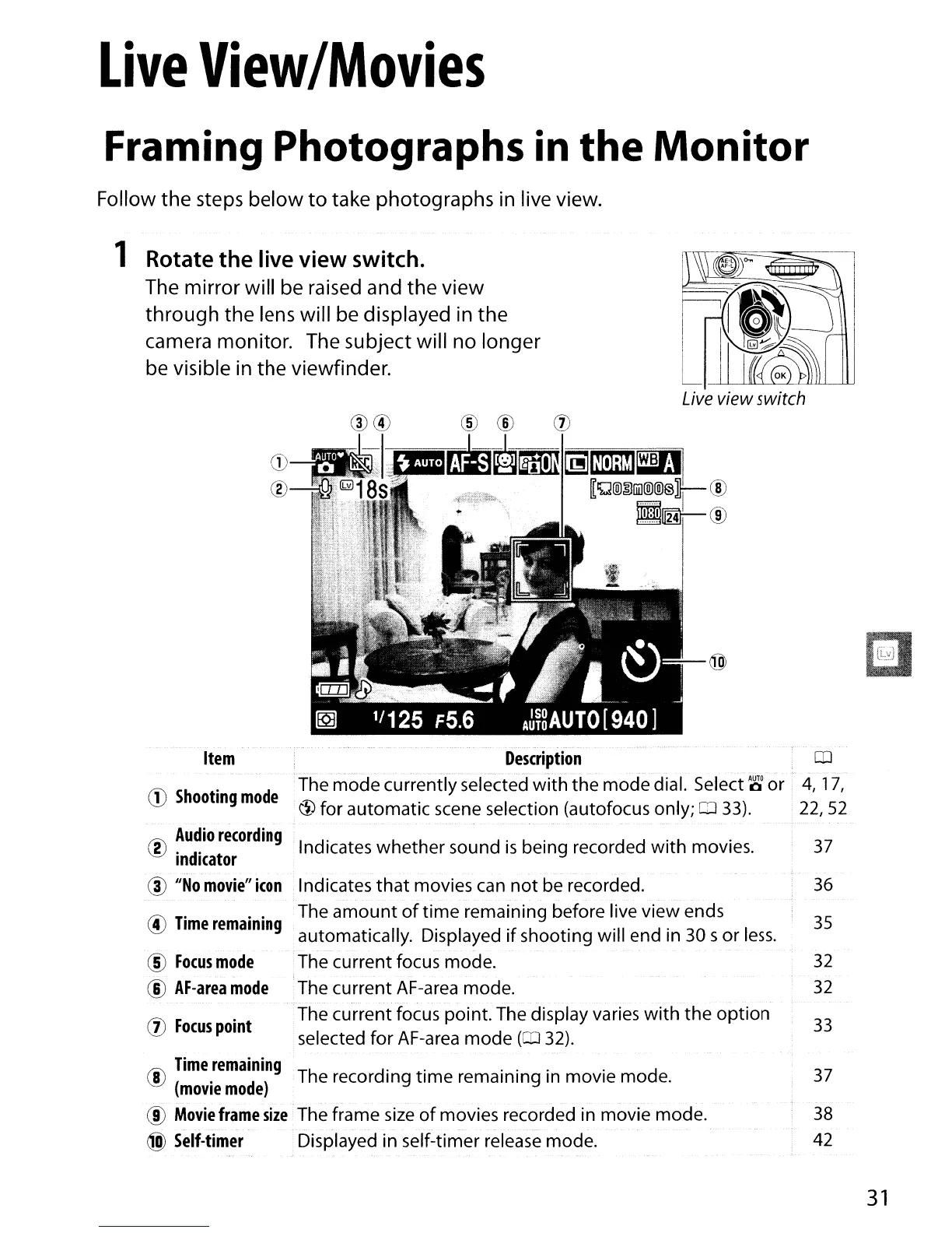 live view switch.