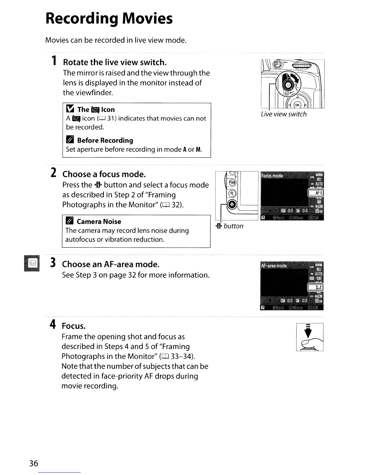 be recorded in live view mode.