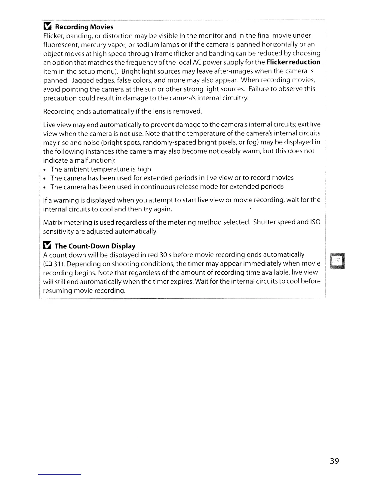 , panned. Jagged edges, false colors, and moire may also appear. When recording movies,
