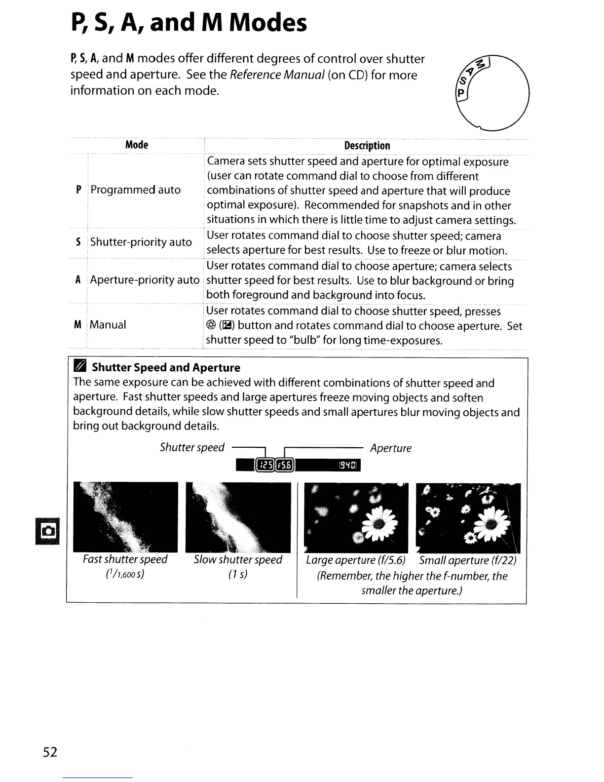 choose aperture; camera selects