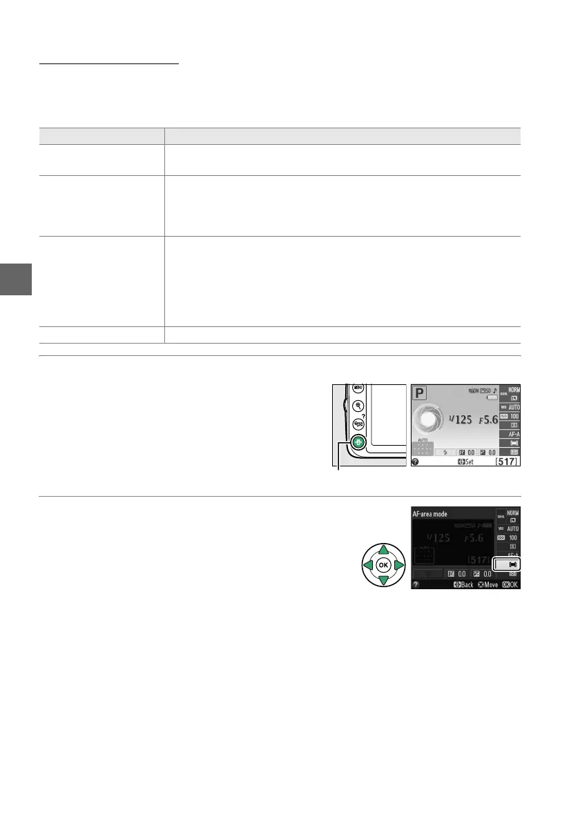 AF) and f (3D-tracking (11 points)) are not available when AF-S is selected for