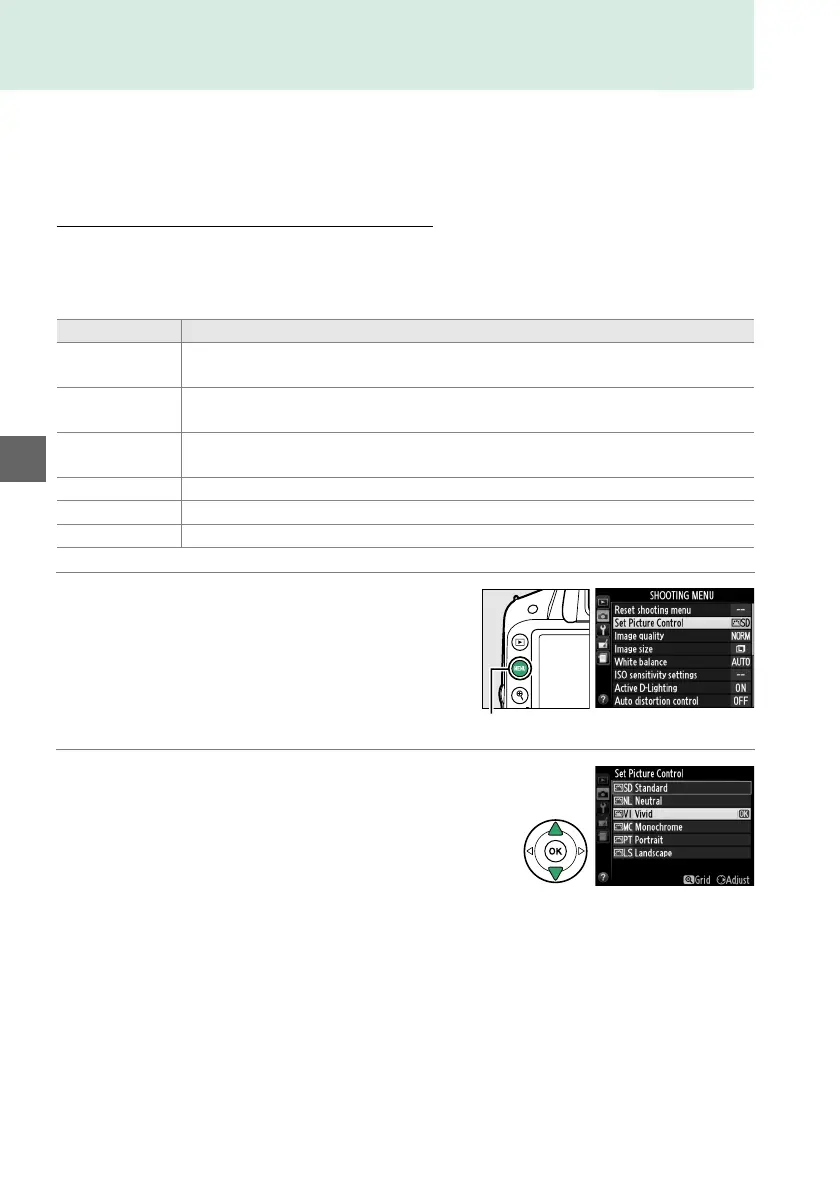 Picture Control according to the subject or type of scene (in other modes, the camera