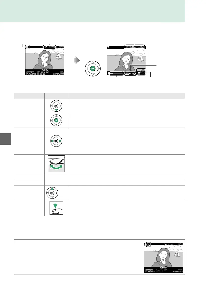 Movies are indicated by a 1 icon in full-frame playback (0 97).