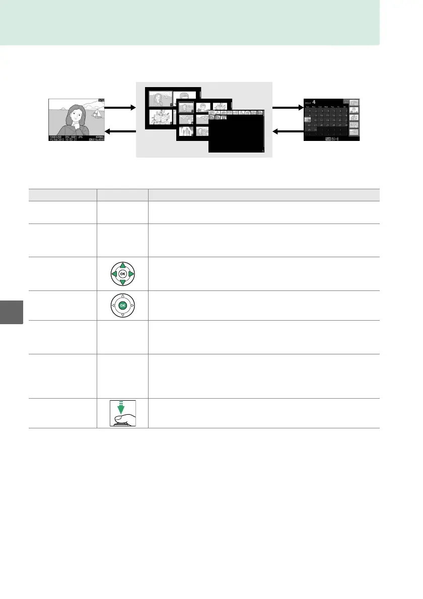 To display images in “contact sheets” of four, nine, or 72 images, press the W (Q)
