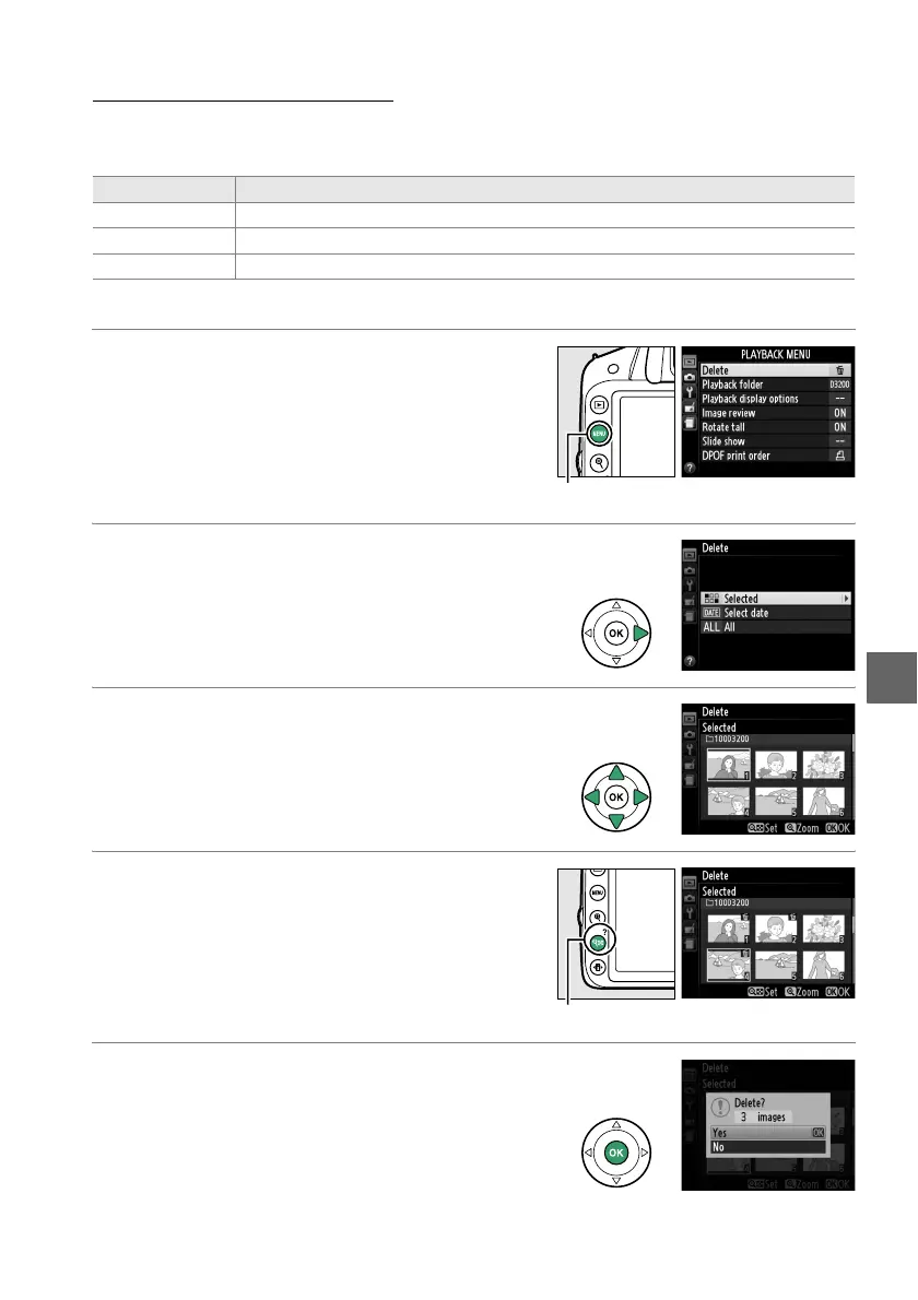 The Delete option in the playback menu contains the following options.