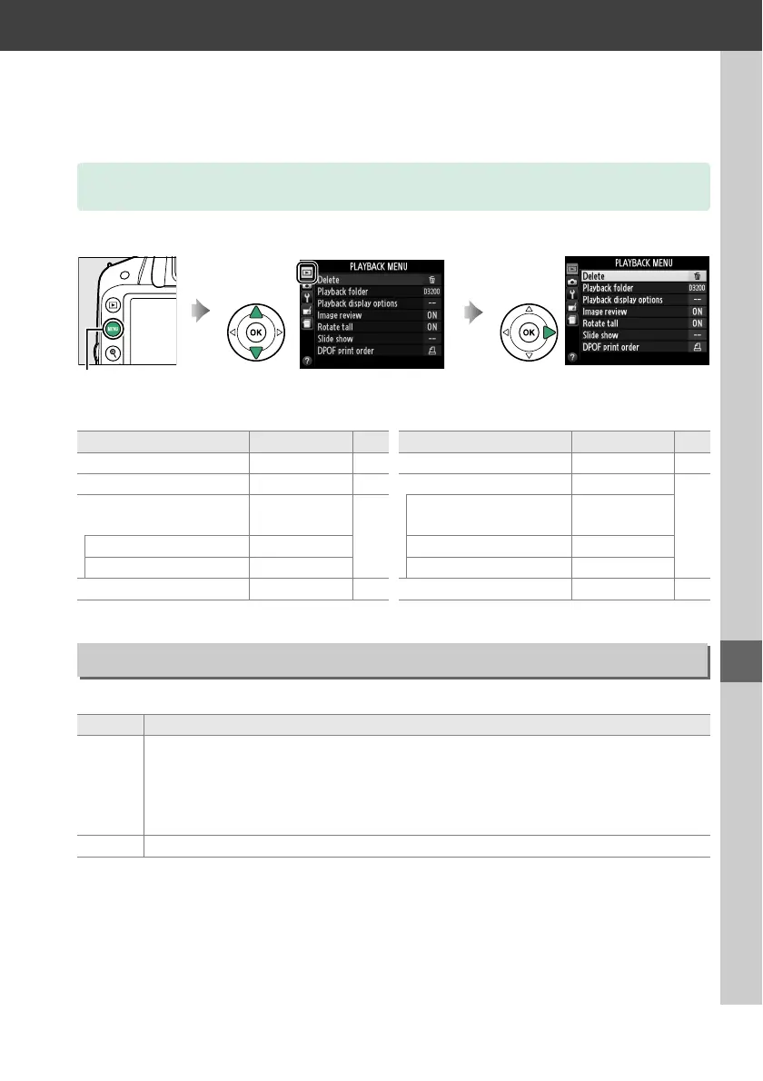 To display the playback menu, press G and select the D (playback menu) tab.