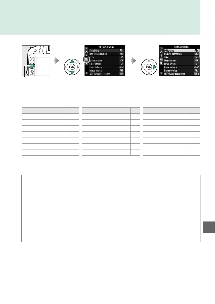 To display the retouch menu, press G and select the N (retouch menu) tab.