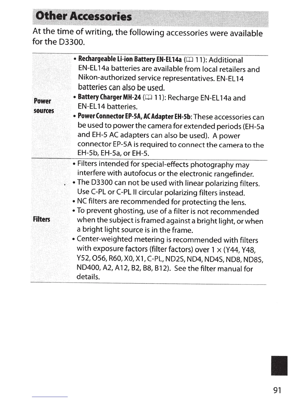 • Filters
