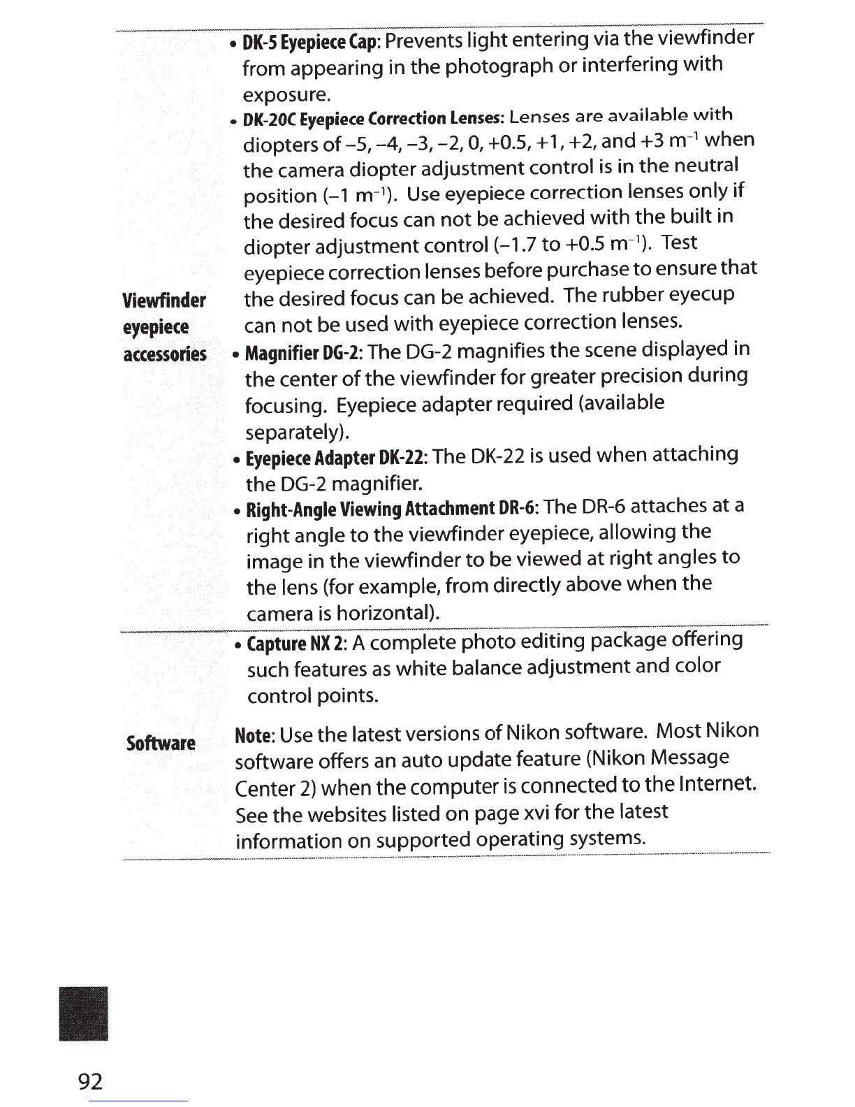 eyepiece correction lenses.