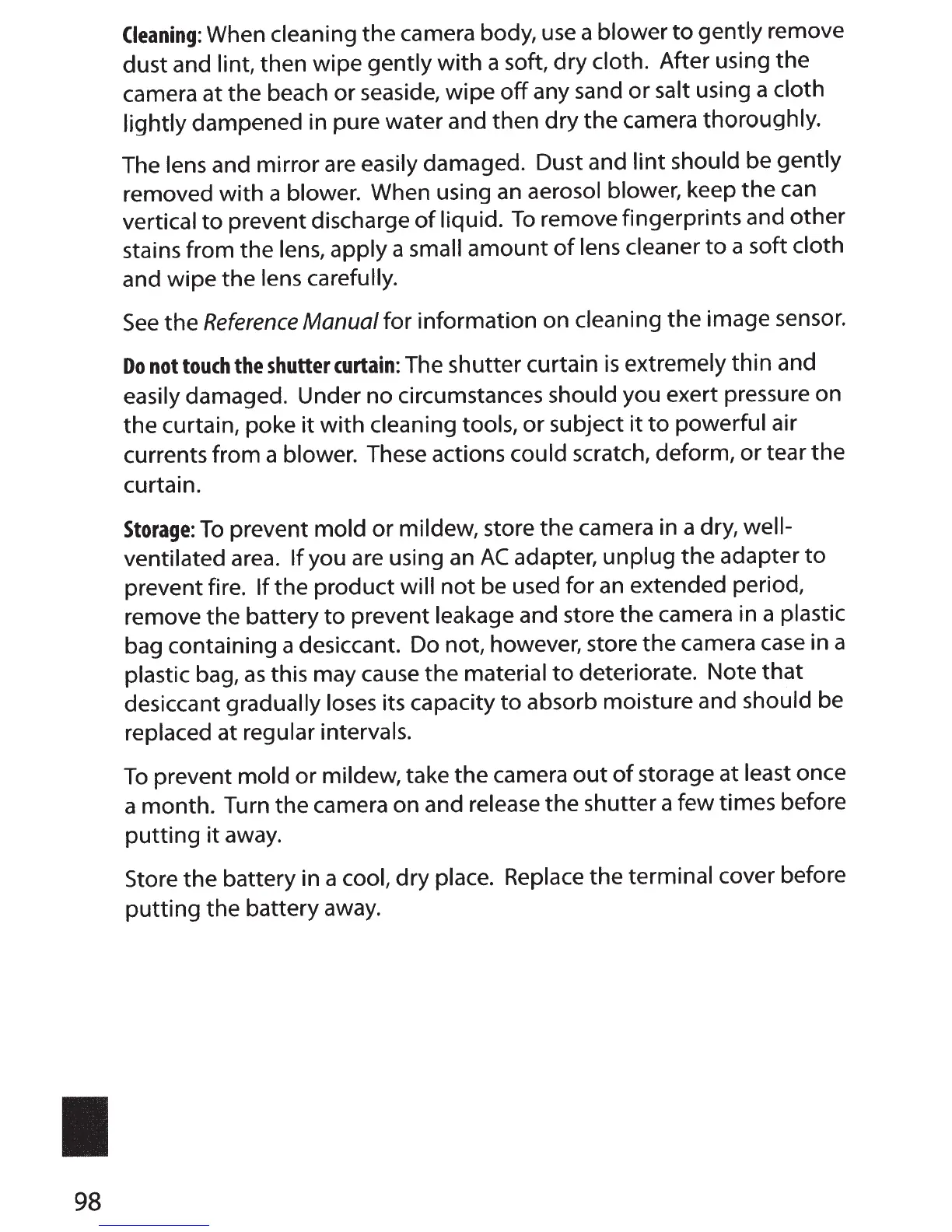 store the camera in a dry,