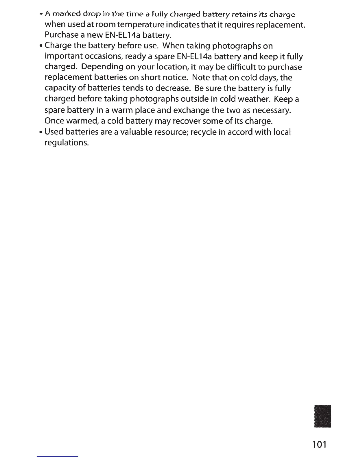 spare battery in a warm place and exchange