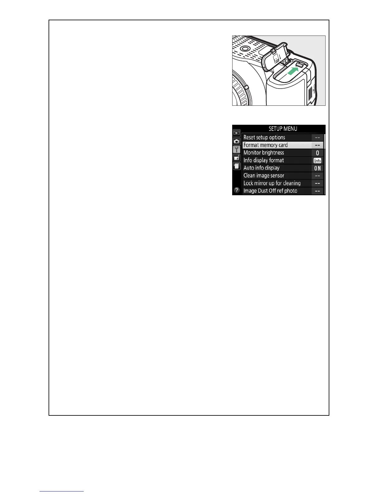 memory card in the setup menu and follow