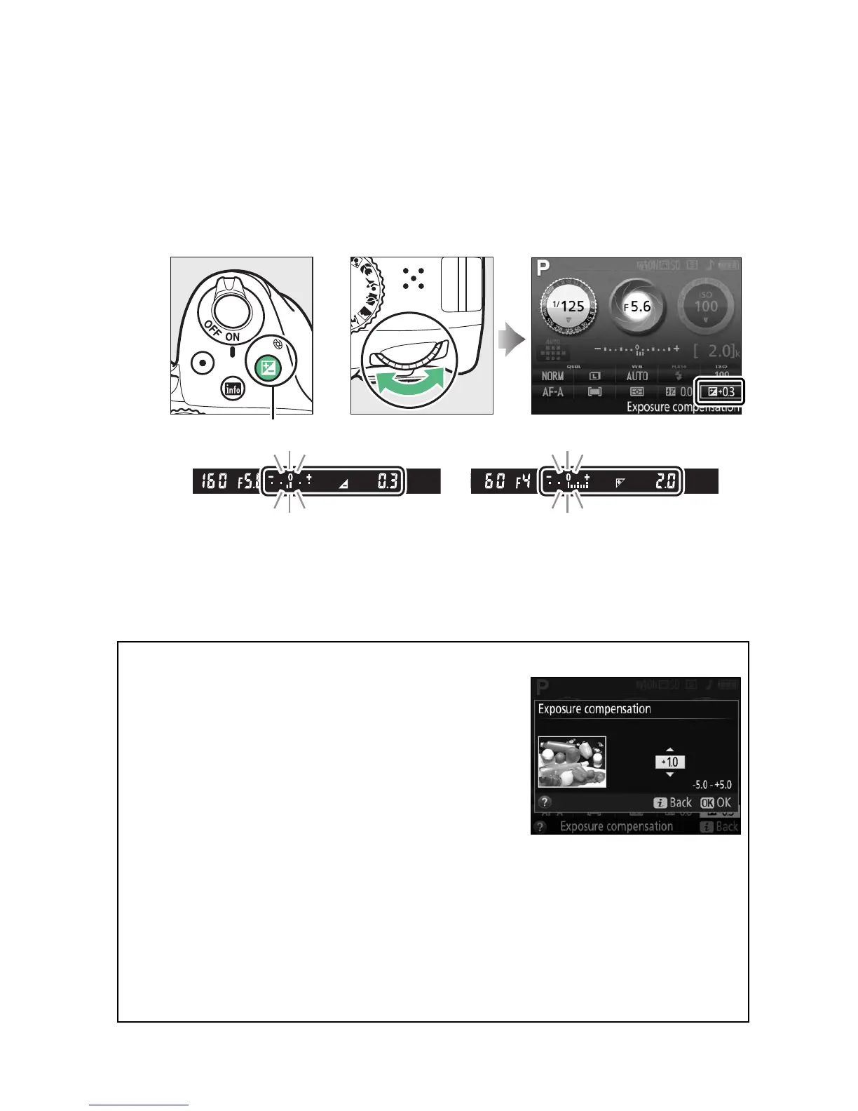 To choose a value for exposure compensation, keep the E (N)