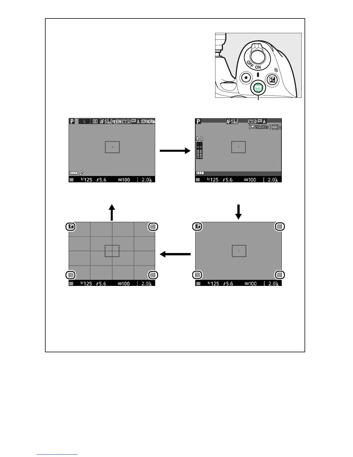 Press the R button to cycle through display
