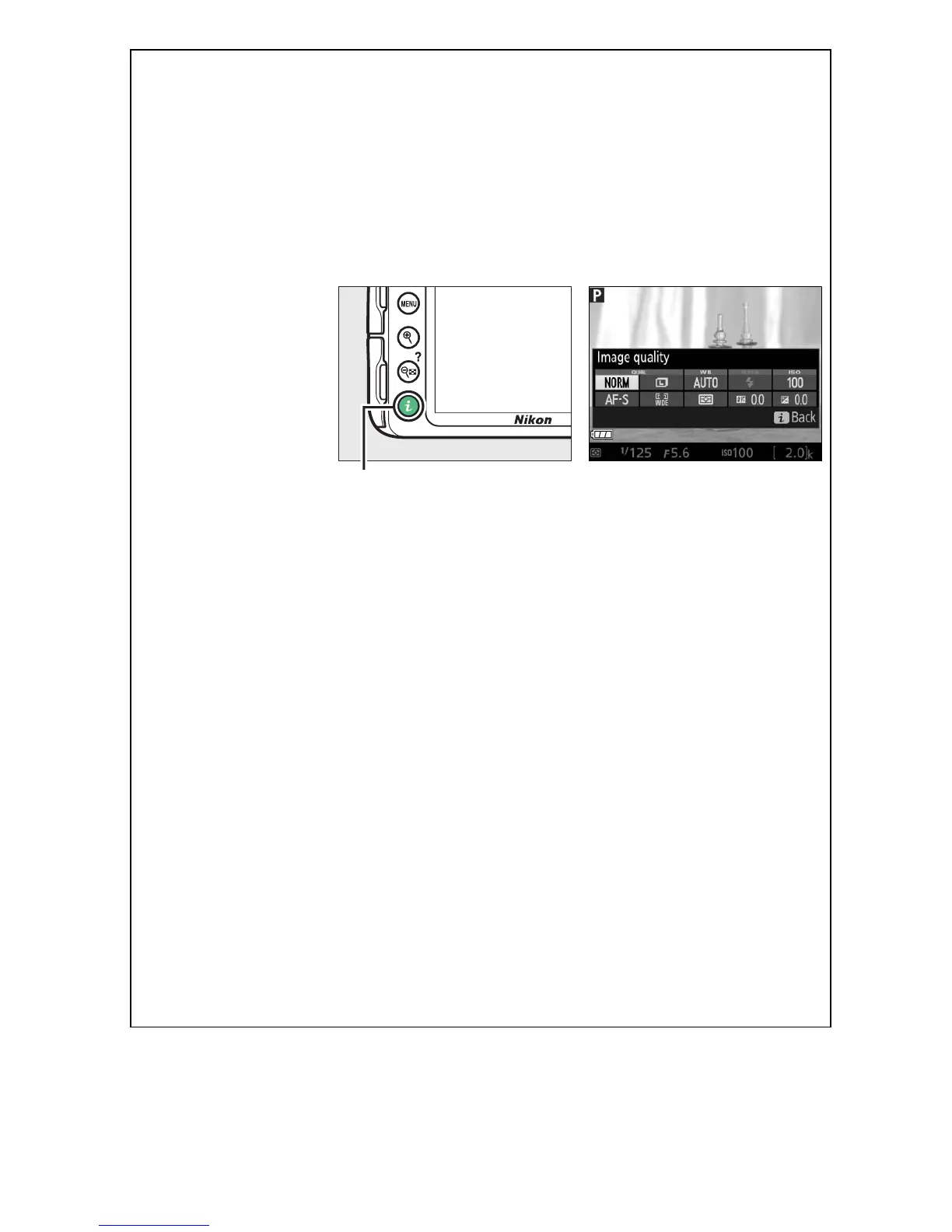 following live view photography settings by pressing the P button: