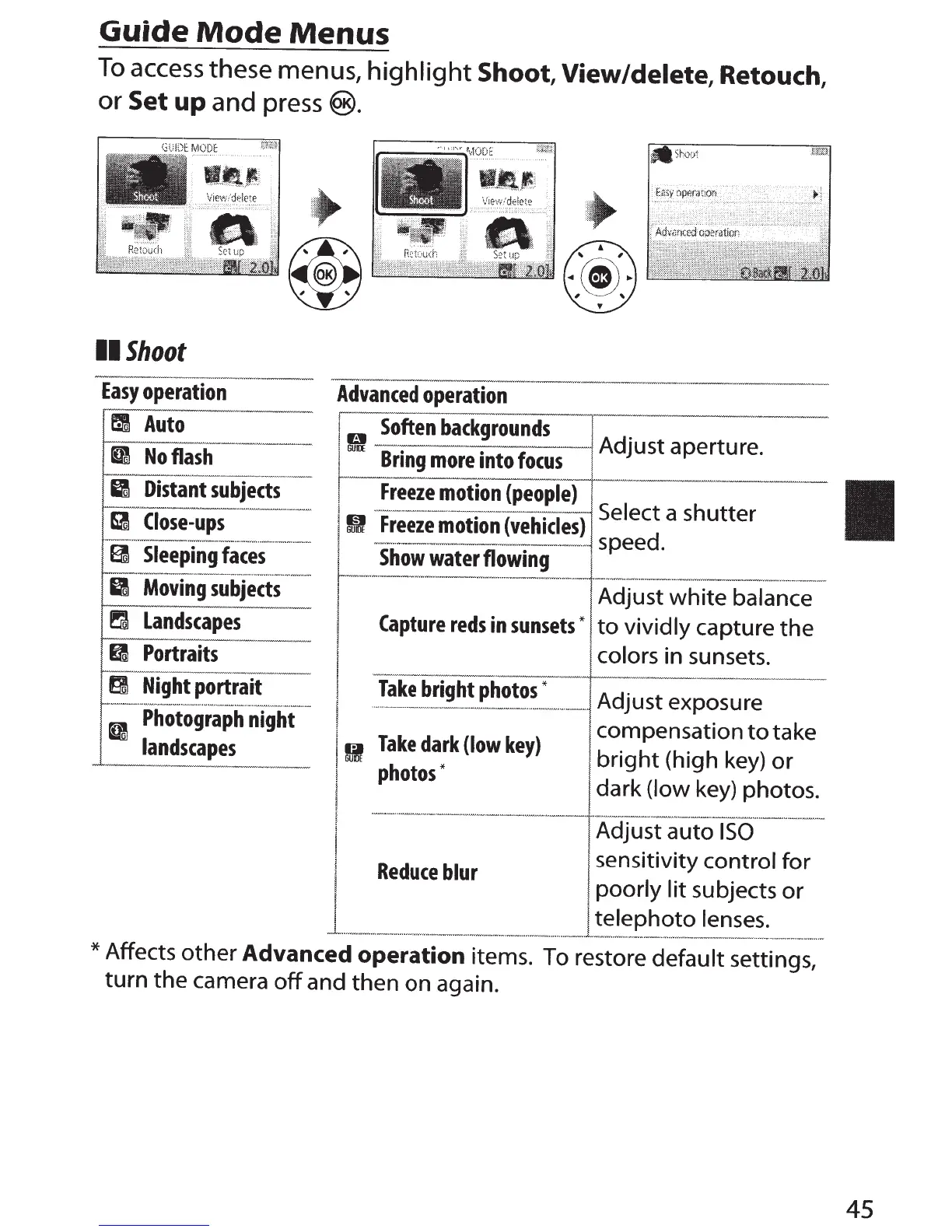 items. To restore default settings,