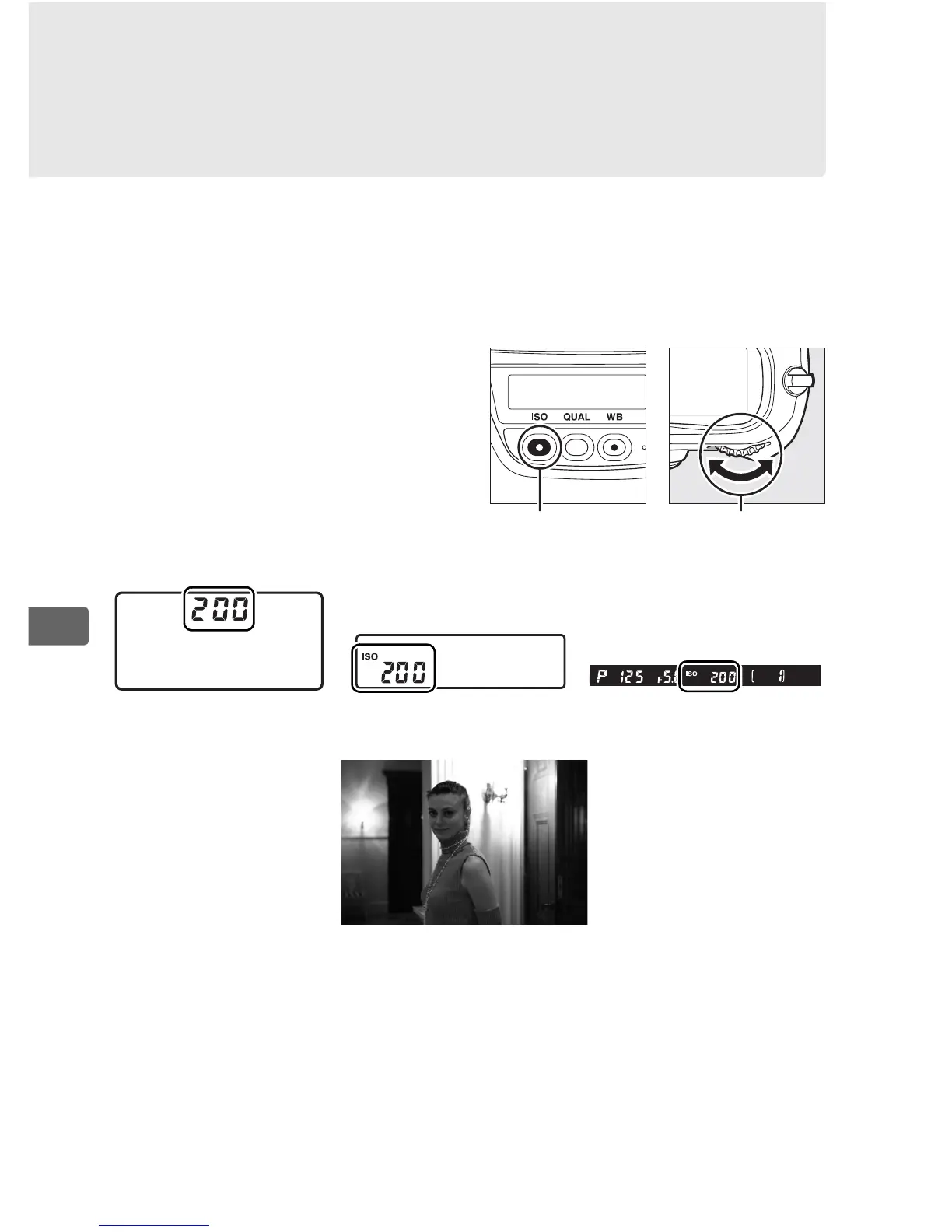 ISO sensitivity can be set to values between ISO 200 and ISO 12800