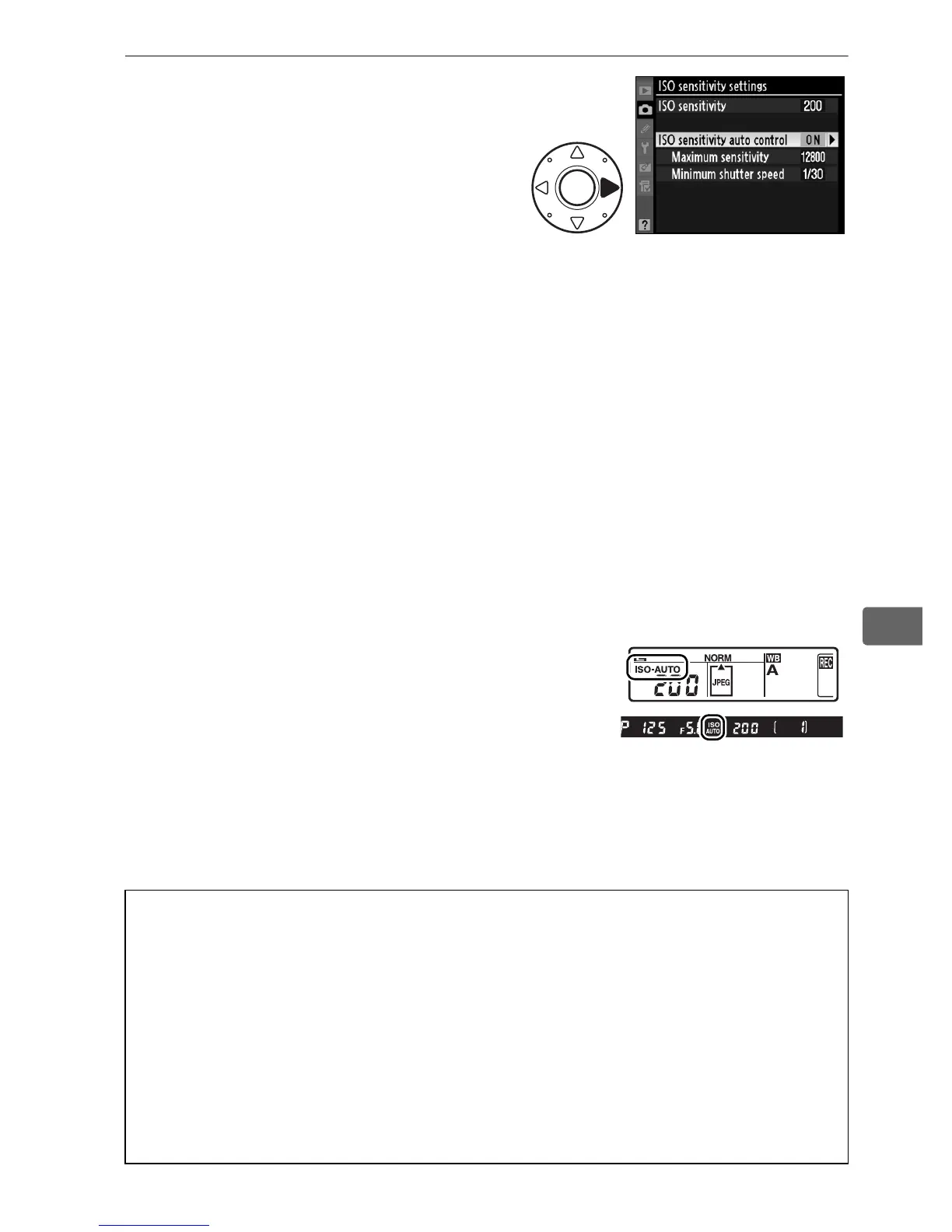 Note that ISO sensitivity may be raised automatically when auto ISO