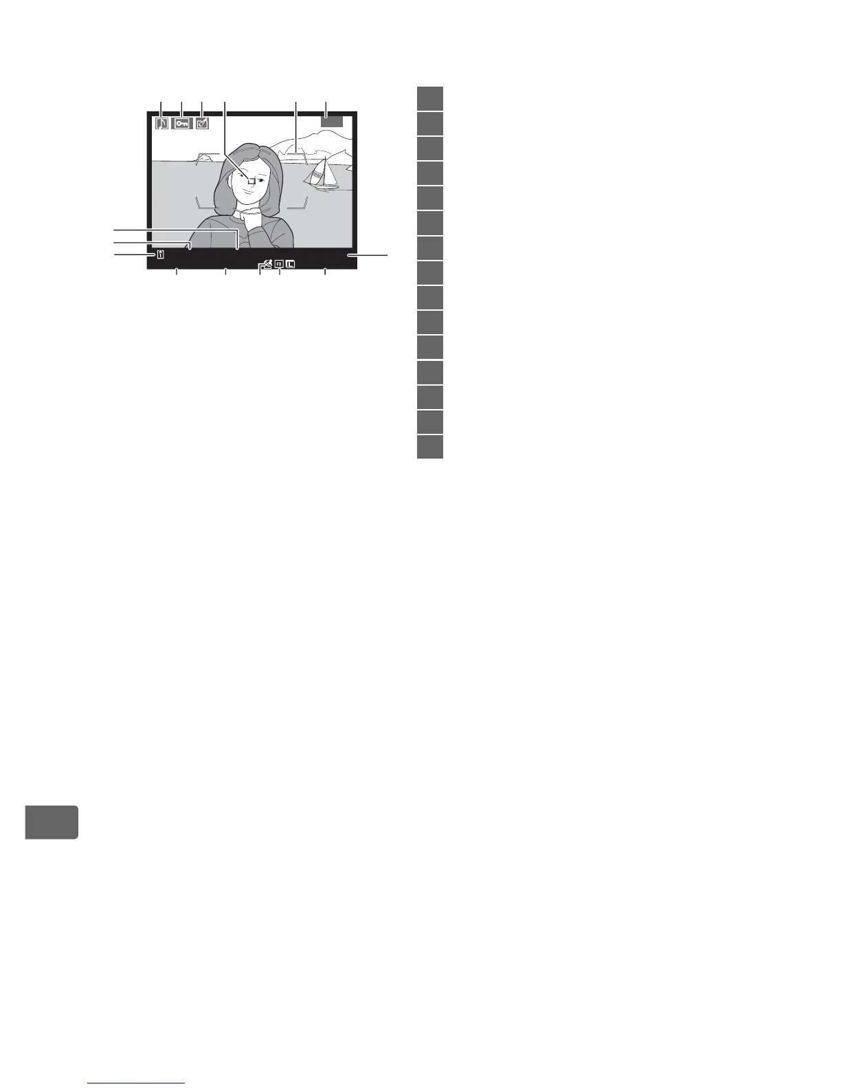 2 If photograph was taken in focus mode S, display shows point where focus first locked.