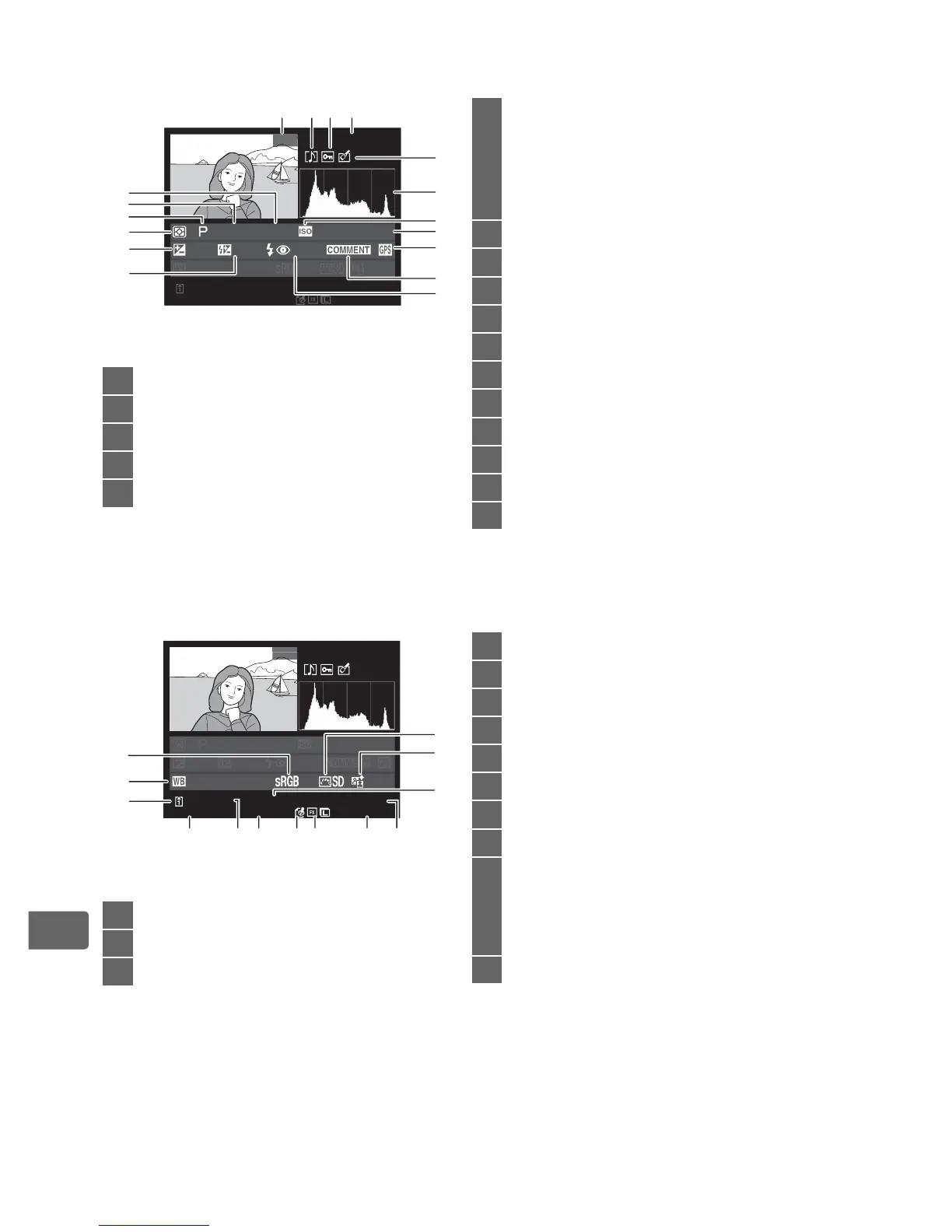 1 Displayed in red if photo was taken with ISO sensitivity auto control on.