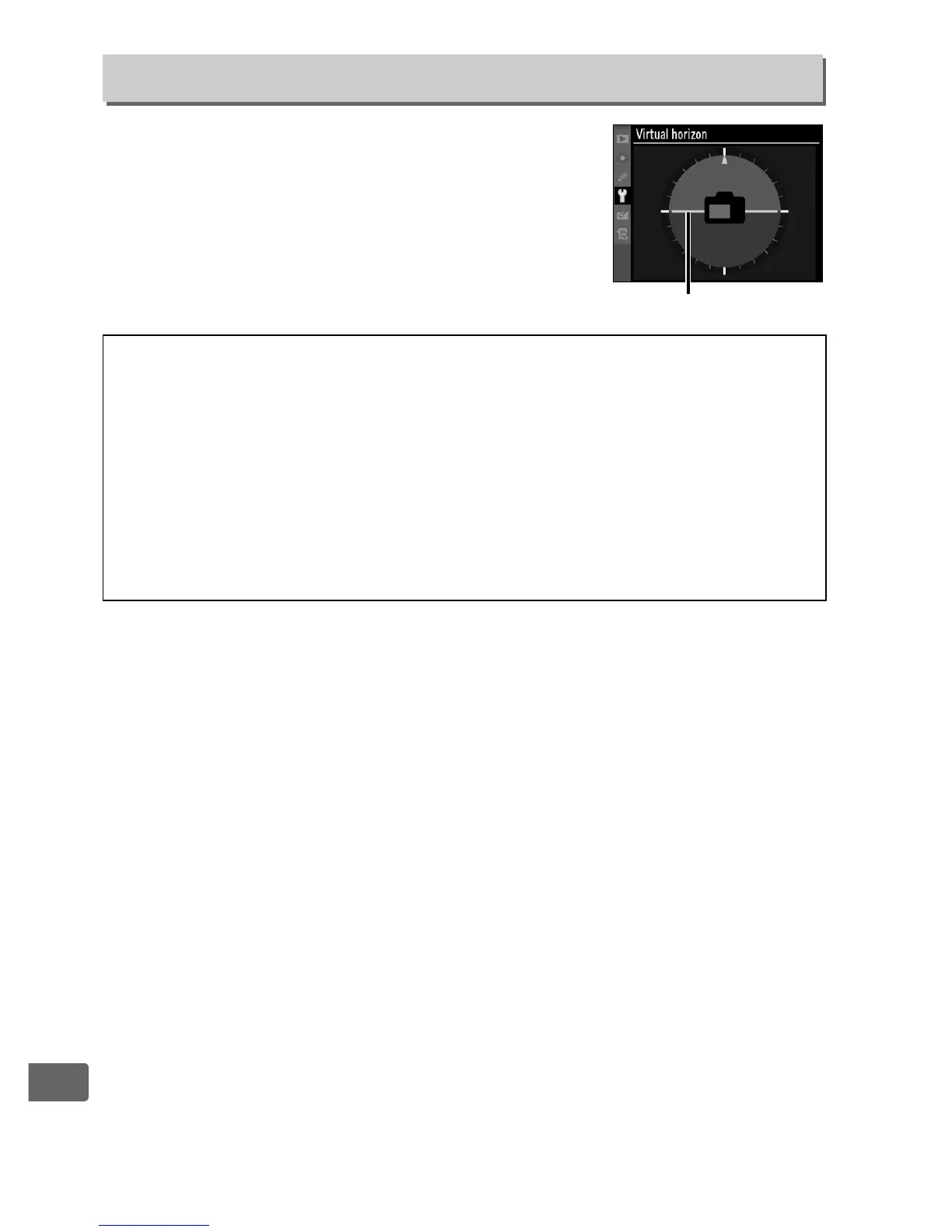 For information on displaying a virtual horizon in live view, see page 62.