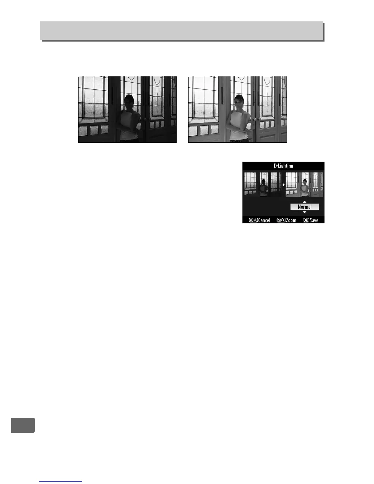 D-Lighting brightens shadows, making it ideal for dark or backlit