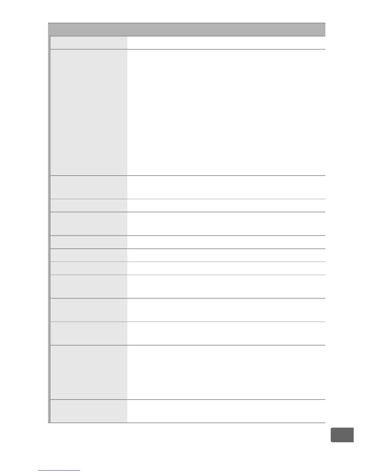 • Matrix or center-weighted metering: 0–20 EV