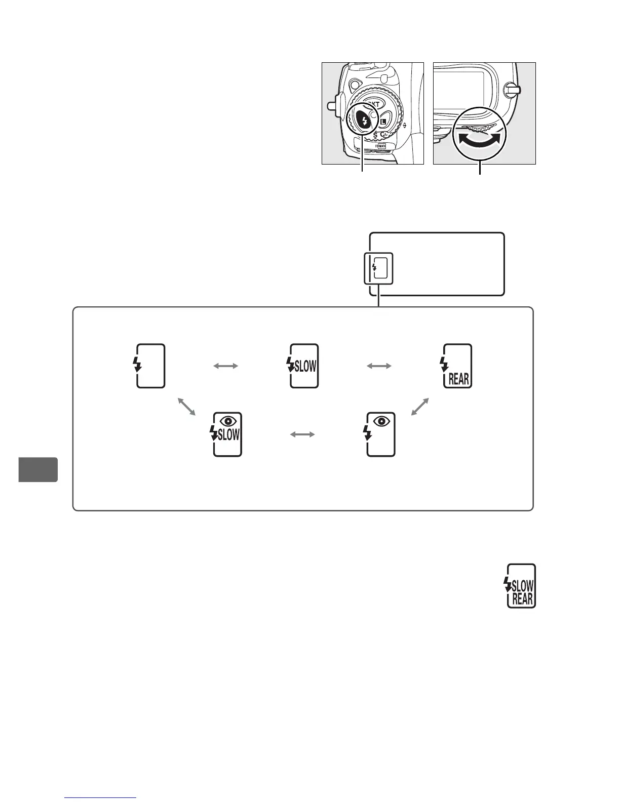 2 In exposure modes e and g, flash-sync mode will be set to slow