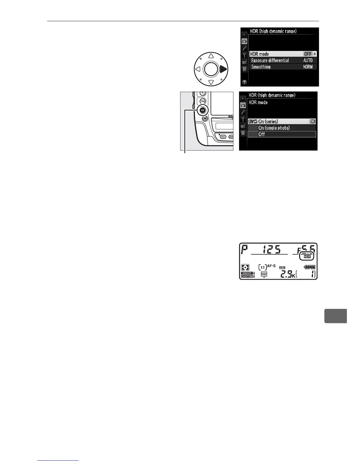 • To exit without creating additional HDR photographs, select Off.