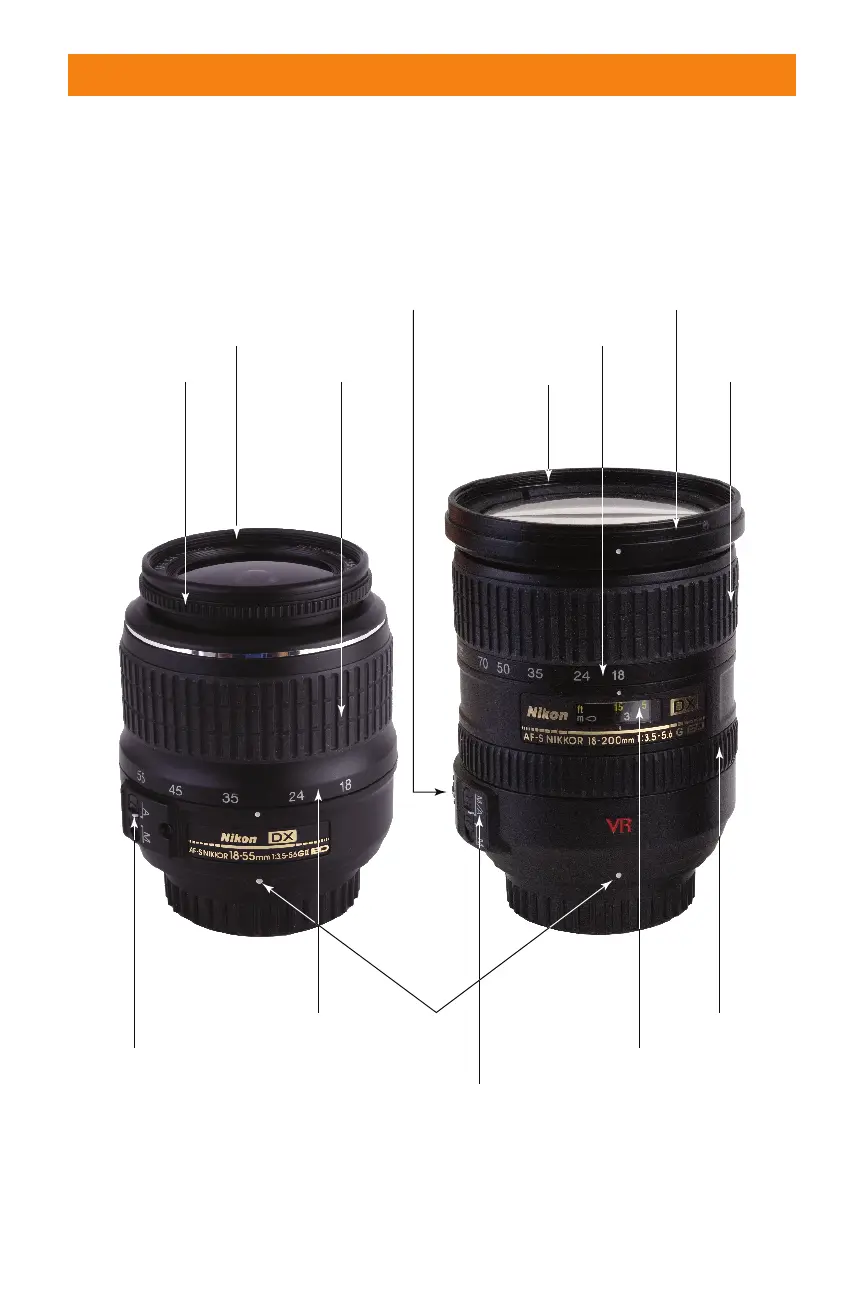 1.9 The controls found on the 18-55mm kit lens (left) and 18-200mm vibration reduction
