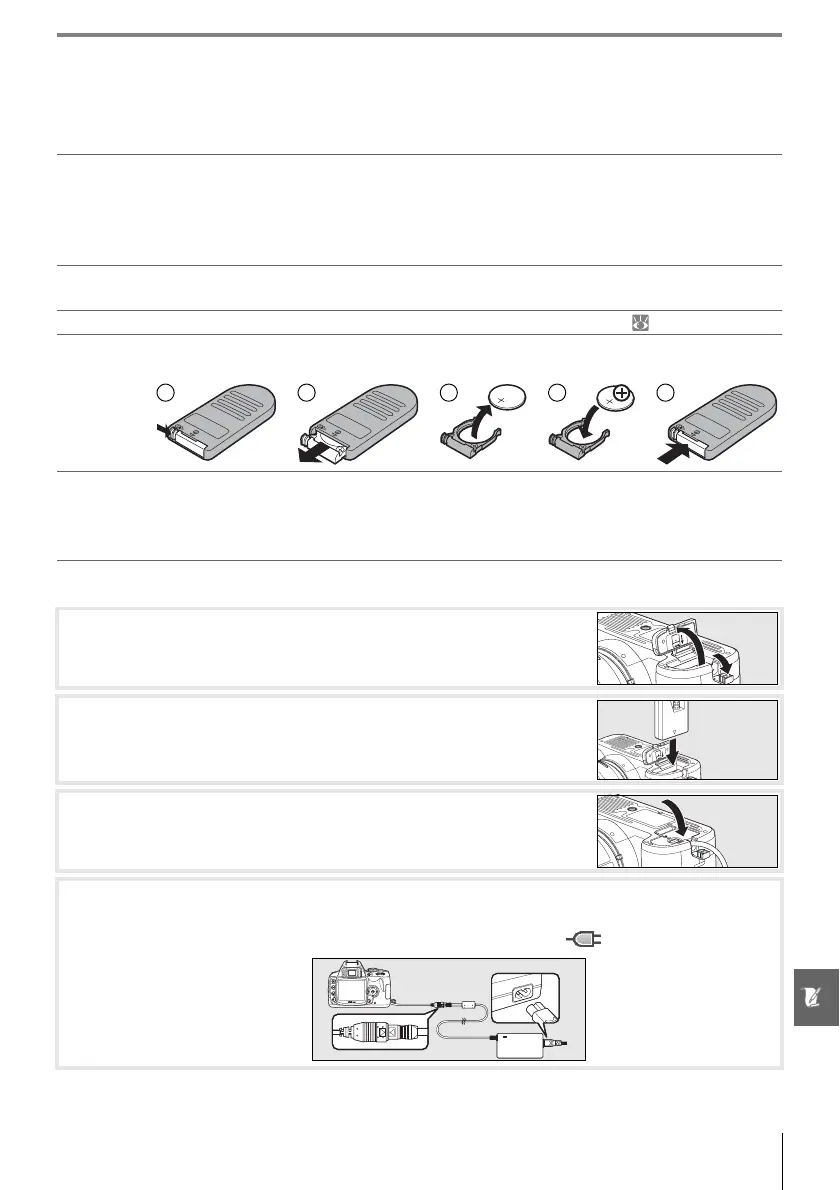• EH-5 AC adapter: Use to power the camera for extended periods. EP-5 AC adapter connec-